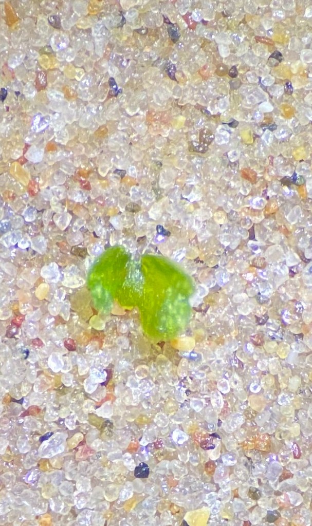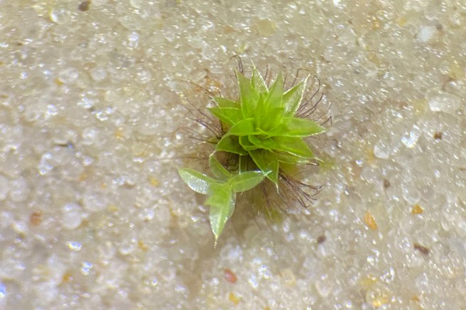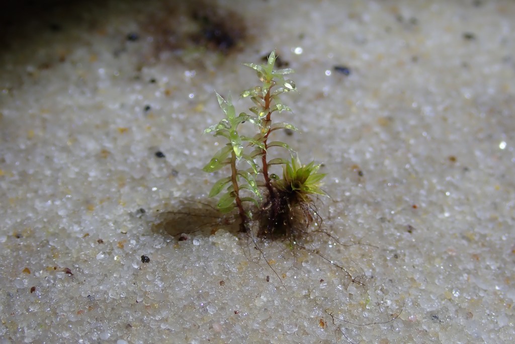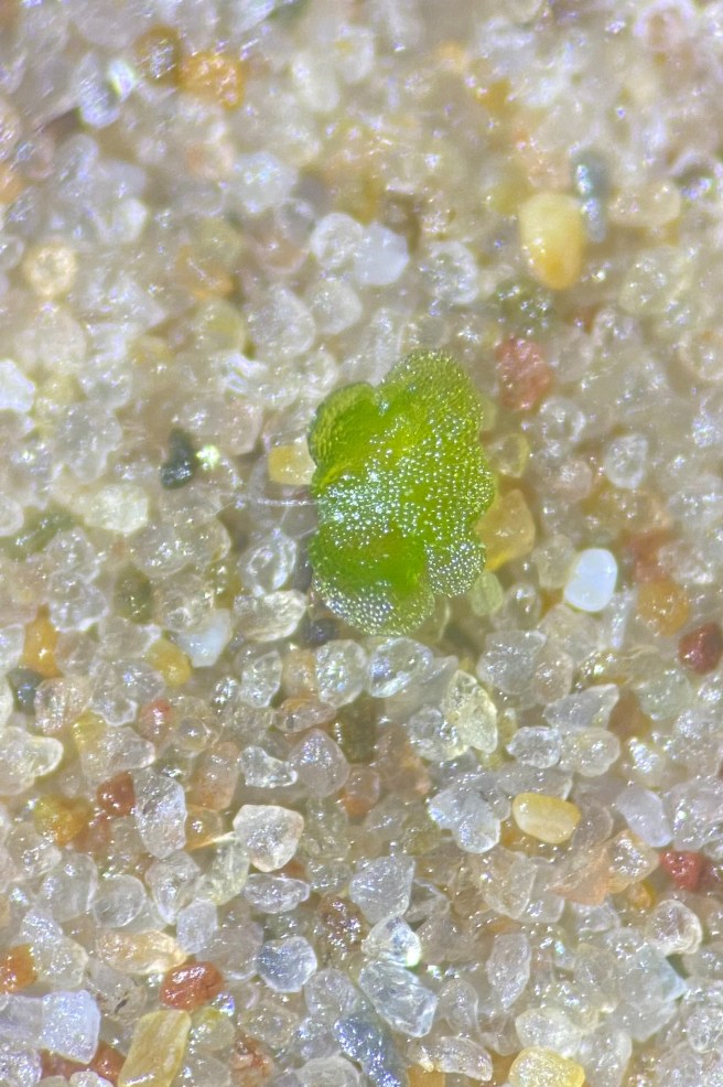- Cultivation on sand seems to work well (so far) for the species I have chosen. I was concerned about contaminations because at home, I cannot easily grow samples under sterile conditions. So far, I have had no problems with fungal or algal growth. The sand that I chose also has the advantage that it contrasts the bryophyte tissue well, making it easy to spot little changes over time, and to take photos.