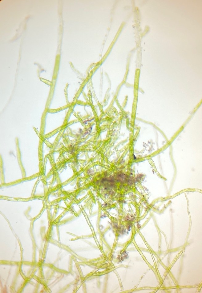 Another three weeks later, the protonema had grown much larger. Most of it had turned brown, which at first looked disappointing to me. But, encouragingly, it was still growing.