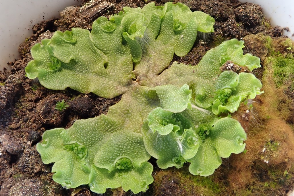 While the Marchantantia polymorpha gemmaling did not do too well, L. cruciata flourished. The specimen started producing the characteristic gemma cups and I am in no shortage now of clones for further experiments with this lineage.