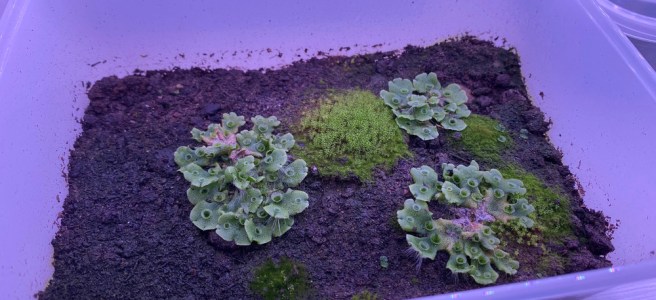 In a laboratory, one might want to grow bryophytes under axenic conditions, excluding other “contaminating” species from cultures. I am keen to try that out in the future. For now, I am enjoying the diversity of species that live in my containers, and I will write about them in the future.